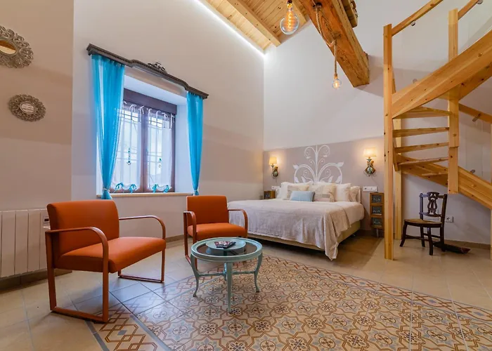 Les chambres climatisées comprennent un vestiaire et un coin salon et offrent une climatisation pour votre plus grand confort. Meublées d'un bureau, elles disposent également d'une cheminée en pierre et des fenêtres insonorisées. Dotées d'une toilette séparée et d'une douche, les salles de bains disposent également d'un sèche-cheveux et des serviettes.
